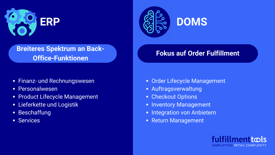 Ein ERP deckt einige Funktionen zur Auftragsabwicklung ab, aber es beinhaltet nicht die innovativen Order Management Funktionen eines DOMS.